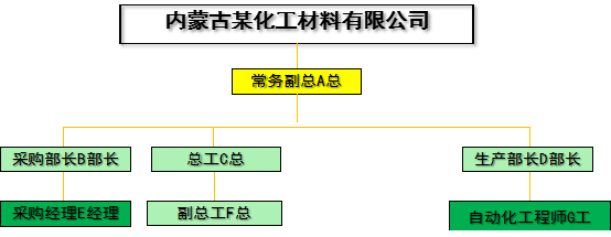 發(fā)展并培養(yǎng)線人是項(xiàng)目運(yùn)作成單的重要保障,線人不僅能為我方提供重要的項(xiàng)目情報(bào),而且還能幫助推進(jìn)項(xiàng)目出謀劃策,甚至在關(guān)鍵的時(shí)候在內(nèi)部幫助我方運(yùn)作項(xiàng)目,里應(yīng)外合是大項(xiàng)目運(yùn)作成單的重要策略。 【案例背景】 內(nèi)蒙古某化工材料股份有限公司, 是國家級(jí)高新技術(shù)企業(yè)、中國該領(lǐng)域的龍頭生產(chǎn)企業(yè)。變電站自動(dòng)化系統(tǒng)歷史上的供應(yīng)商有GDNR、SM、XJDQ等。電石項(xiàng)目采用的是SM產(chǎn)品;VAC一期項(xiàng)目招標(biāo)使用GDNR公司產(chǎn)品,二期項(xiàng)目議標(biāo)使用GDNR系統(tǒng);水泥項(xiàng)目使用XJDQ的自動(dòng)化系統(tǒng)。 【組織架構(gòu)】
