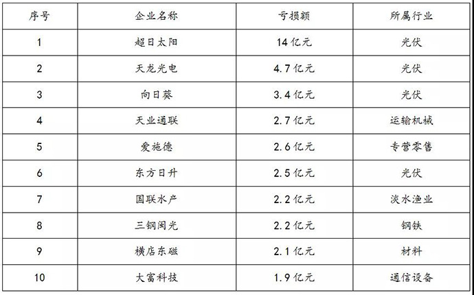 ![]() 從表2-1中來看,除第一名中國遠(yuǎn)洋的虧損金額比2011年有所下降外,2012年上市企業(yè)的虧損額比2011年的基本要高出1倍多,可見2012年的經(jīng)濟(jì)形勢比2011年還要悲慘,企業(yè)應(yīng)對市場變化的風(fēng)險(xiǎn)能力未曾改變。 2、除此以外,光伏行業(yè)成中小板虧損重災(zāi)區(qū) 不少中小企業(yè)的老板反映2012年的經(jīng)濟(jì)形勢比08年金融危機(jī)時(shí)還慘,上市公司的年報(bào)顯然印證了這一點(diǎn)。尤其在2012年陷入行業(yè)“冰凍期”的中國光伏行業(yè),更是哀鴻遍野一片。虧損情況如表2-2所示。
