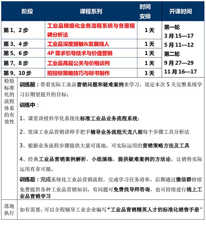2019年工業(yè)品營銷研究院-全年公開課開課表