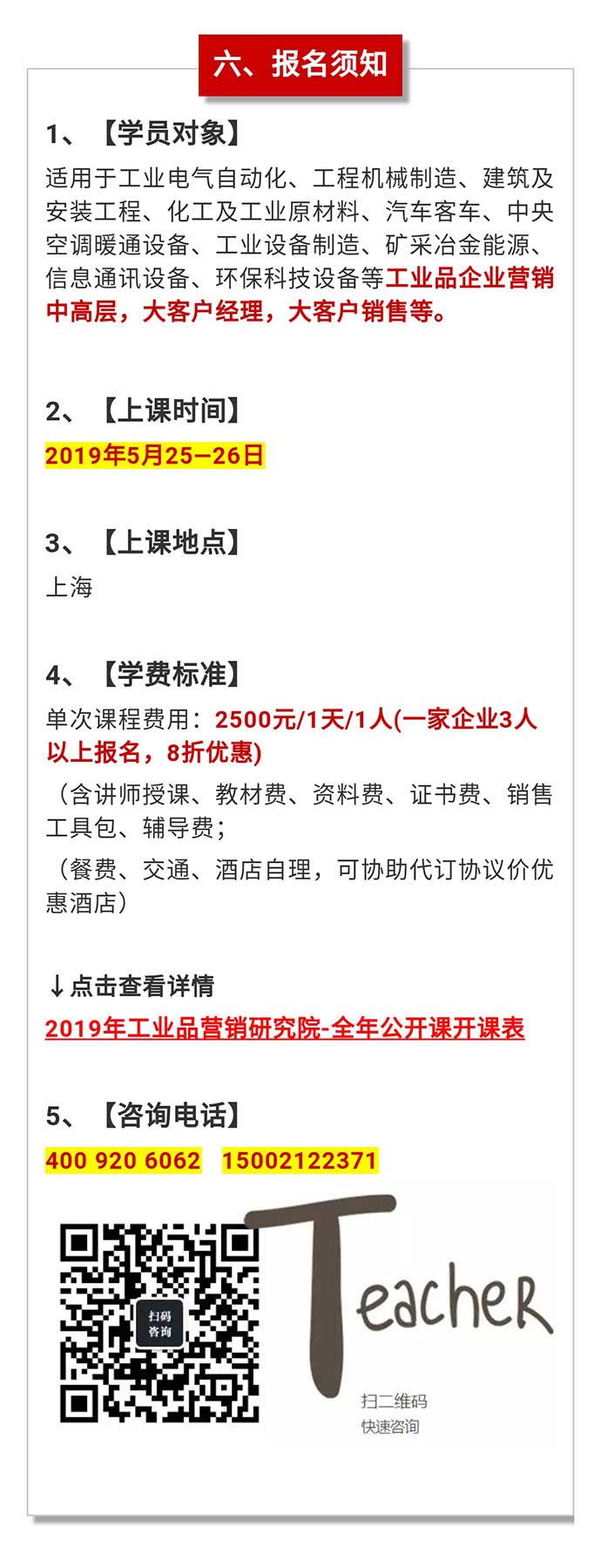 【公開課預(yù)告】2019年5月25—26日工業(yè)品營銷《做大單-靠團隊靠系統(tǒng)》公開課! 點擊次數(shù):6575發(fā)布時間:2019-4-28 21:00:37 上一條:【公開課預(yù)告】9月27-29日工業(yè)品營銷精英人才壓模系統(tǒng)公開課即將開課下一條:【公開課預(yù)告】2019年6月15-16日項目型銷售與標準化管理—講師授證班