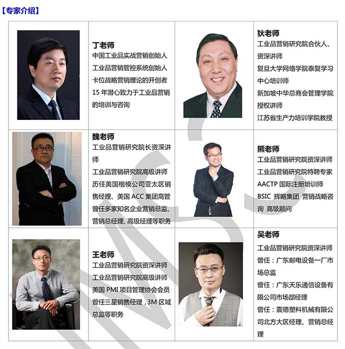 工業(yè)品營銷研究院院長領(lǐng)銜的6位專家顧問團,均10年以上行業(yè)背景,合力全程教練式輔導