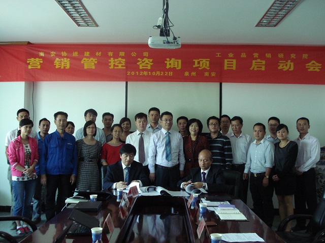 2012年10月22日上午,南安協(xié)進(jìn)建材有限公司營銷管理與能力提升體系建設(shè)項(xiàng)目啟動儀式在公司總部成功舉行。協(xié)進(jìn)公司總經(jīng)理王家助與工業(yè)品營銷研究院院長丁興良代表雙方簽署了項(xiàng)目咨詢合作協(xié)議書,并宣布項(xiàng)目領(lǐng)導(dǎo)小組成立,以此表示對該項(xiàng)目的高度重視和積極支持。