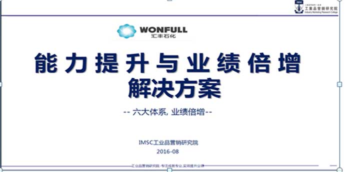 2016年9月,山東匯豐石化集團有限公司特邀工業(yè)品營銷研究院為其企業(yè)營銷團隊進行為期一年的《銷售精英人才壓模系統(tǒng)課程》培訓(xùn)+全面輔導(dǎo)訓(xùn)練,以丁老師為主導(dǎo)的講師團隊根據(jù)企業(yè)所存在的問題提出了一系列解決方案更針對其業(yè)務(wù)流程管控“天龍八部”、實操技巧、項目分析等進行系統(tǒng)的培訓(xùn)。