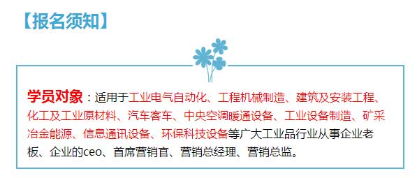 【10月27-29日】工業(yè)品營銷高層研修系列—營銷戰(zhàn)略/品牌推廣/營銷管控/高層公關(guān)/打造團隊/突破瓶頸 |