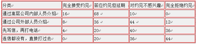 國外的銷售專家做過類似的調(diào)查,看大部分的公司高層面對(duì)各種不同的商務(wù)約見,都會(huì)做什么回復(fù)。如圖所示: