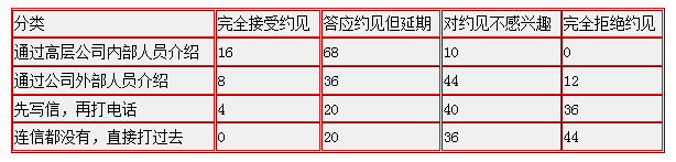 國外的銷售專家做過類似的調查,看大部分的公司高層面對各種不同的商務約見,都會做什么回復。
