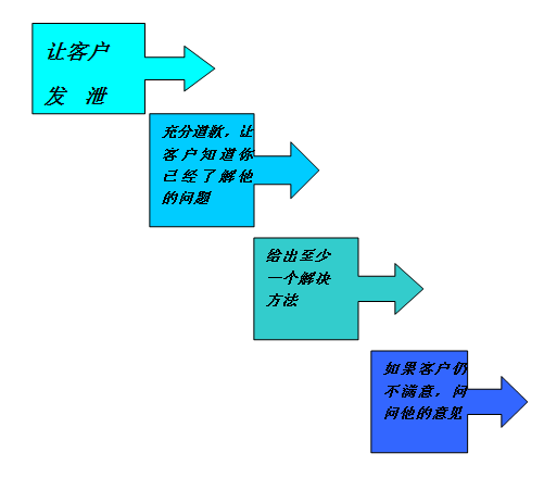 從心理學(xué)上講,有一種“心理凈化”現(xiàn)象:當用戶不滿時,他一定心煩意亂,這時他只想做兩件事情:表達他的感情和想使他的問題得到解決。這就是經(jīng)常提到的“先解決心情,再解決事情”。