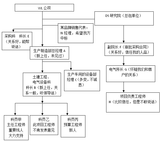 在長期項(xiàng)目中,要長時間的和客戶保持關(guān)系,長時間的了解客戶的人事變動,及時和變動后的人事關(guān)系做出新的公關(guān)。本案例中,由于生產(chǎn)制造部總經(jīng)理A新上任,而銷售人員沒有在第一時間與其進(jìn)行交流溝通,錯失了對關(guān)鍵人物的把握,因此在關(guān)鍵的招投標(biāo)階段對我方做出不利的動作。幸好,我方在業(yè)主、總包方的線人和關(guān)鍵人物的關(guān)系較深入,通過對傾向我方的線人的積極協(xié)調(diào)下,最終拿到合同。