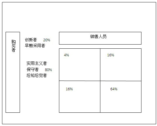 有“老鷹”(20%)與“技工”(80%)兩類銷售人員,若將兩類購買者與兩類銷售專才整合成一個矩陣,就會得到一些有趣的發(fā)現(xiàn)。