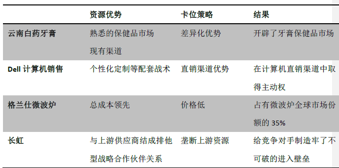 表3-2 通過(guò)卡位建立競(jìng)爭(zhēng)優(yōu)勢(shì)