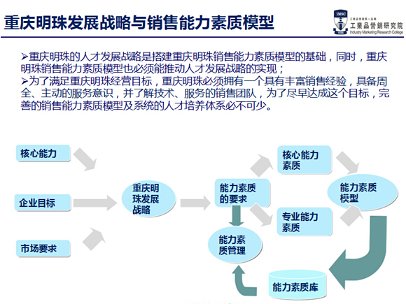經(jīng)過工業(yè)品營銷研究院和重慶明珠的共同努力和配合,研究院為重慶明珠業(yè)務(wù)流程管控方案和運(yùn)營管控方案已在明珠內(nèi)部開始執(zhí)行落實(shí),配套的PSM軟件也正在按計(jì)劃使用;績效薪酬方案已經(jīng)完成;能力模型方案已經(jīng)構(gòu)建完畢,對銷售人員的培訓(xùn)起了很大的指導(dǎo)作用,針對業(yè)務(wù)人員的專業(yè)銷售技能培訓(xùn)也已經(jīng)結(jié)束,整體營銷管控體系的搭建,將有力推動(dòng)重慶明珠沖擊億元銷售額。
