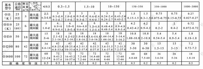 備注:1.測量冷水的流量范圍,連續(xù)運行時大流量取0.3-1.5mPa.s欄中最大流量的50%;最大流量取欄中最大流量的70%;
