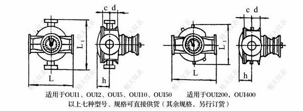 進行加熱,使介質(zhì)融化并保溫。但由于安裝橢圓齒輪流量計處不允許直接通以蒸汽(防止損壞流量計),為此我公司設計了OUI系列產(chǎn)品,即在OI系列流量計殼體外增加保溫夾套,可用熱水、熱油或低于200℃的蒸汽通入保溫夾套,使流量計(或過濾器)內(nèi)已凝固的介質(zhì)融化,并保持一定溫度,從而保證流量計能正常運行。橢圓齒輪流量計前安裝的過了過濾器可采用保溫夾套的形式,用戶需要可特殊訂貨。保溫夾套公稱壓力為0.5MPa。