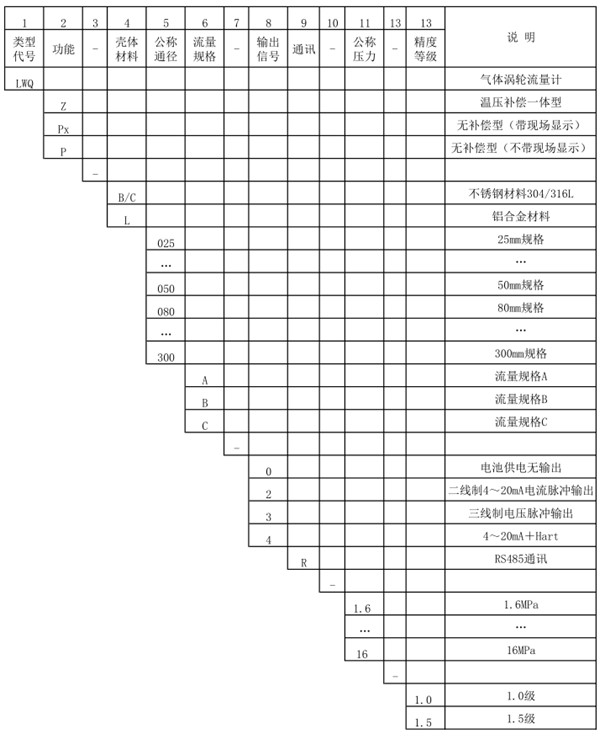 ▮氣體渦輪流量計(jì)產(chǎn)品型號(hào)標(biāo)記