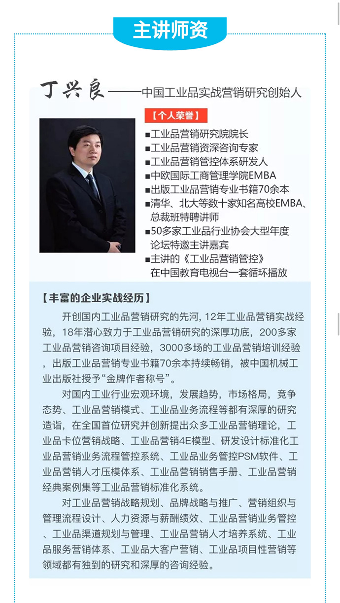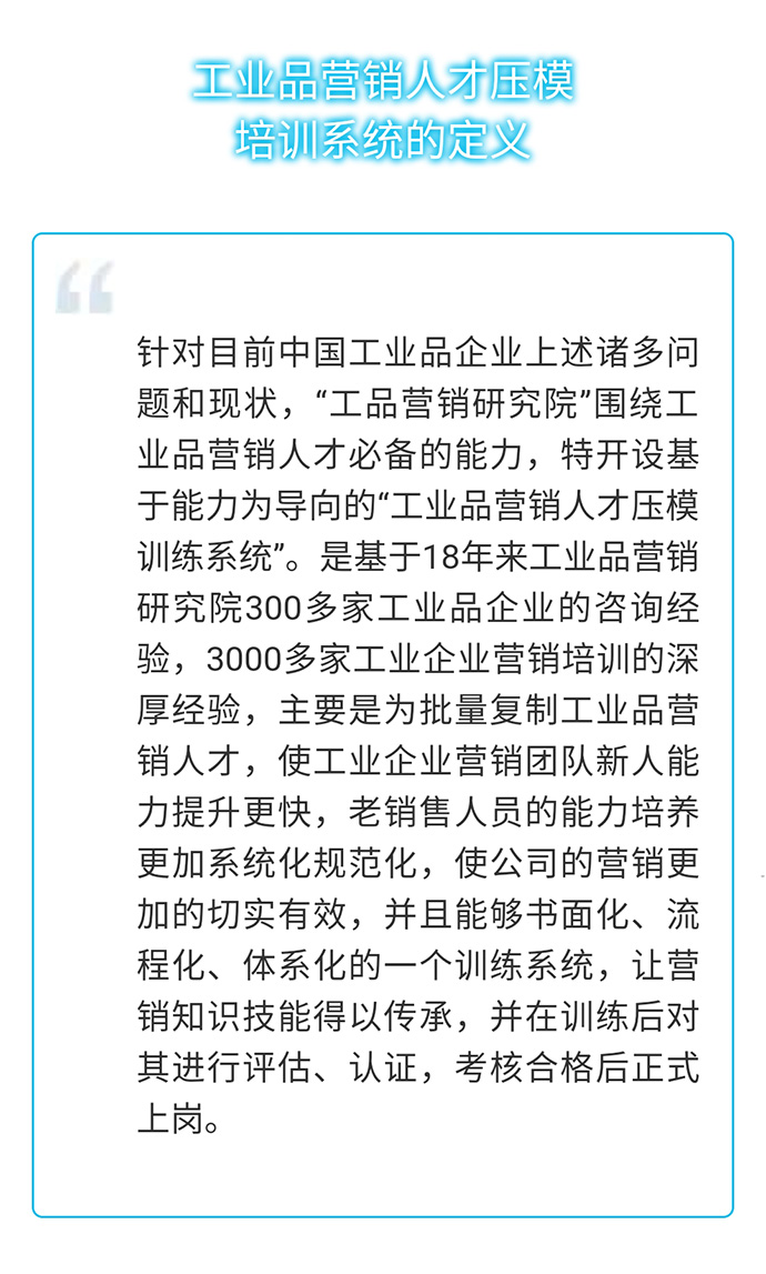 【人才壓模開課預(yù)告】7月26-29日 工業(yè)品營銷精英人才壓模系統(tǒng)公開課 點(diǎn)擊次數(shù):5936發(fā)布時間:2018-6-22 15:54:14 上一條:【總裁班開課預(yù)告】8月24-26日 中國工業(yè)品營銷實(shí)戰(zhàn)咨詢式輔導(dǎo)總裁班!下一條:【總裁班開課預(yù)告】12月21-23日 中國工業(yè)品營銷實(shí)戰(zhàn)咨詢式輔導(dǎo)總裁班!