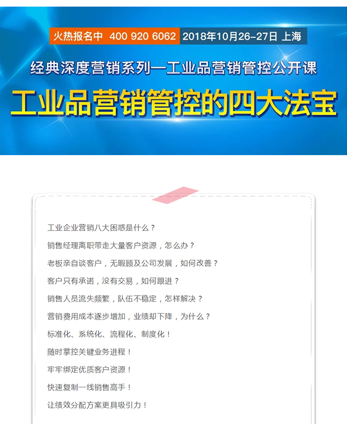 【營銷管控公開課預告】10月26-27日 深度營銷管控系列“工業(yè)品營銷管控”公開課!