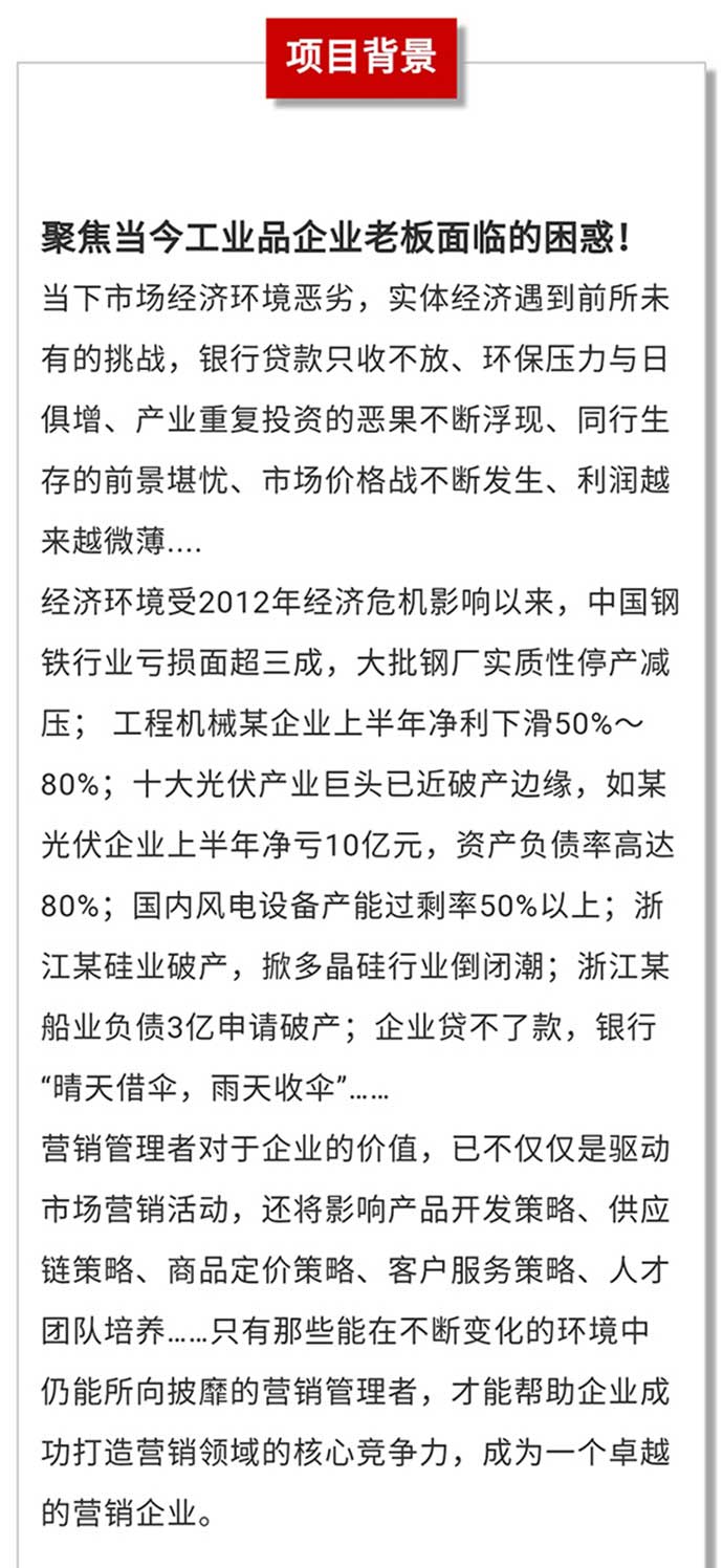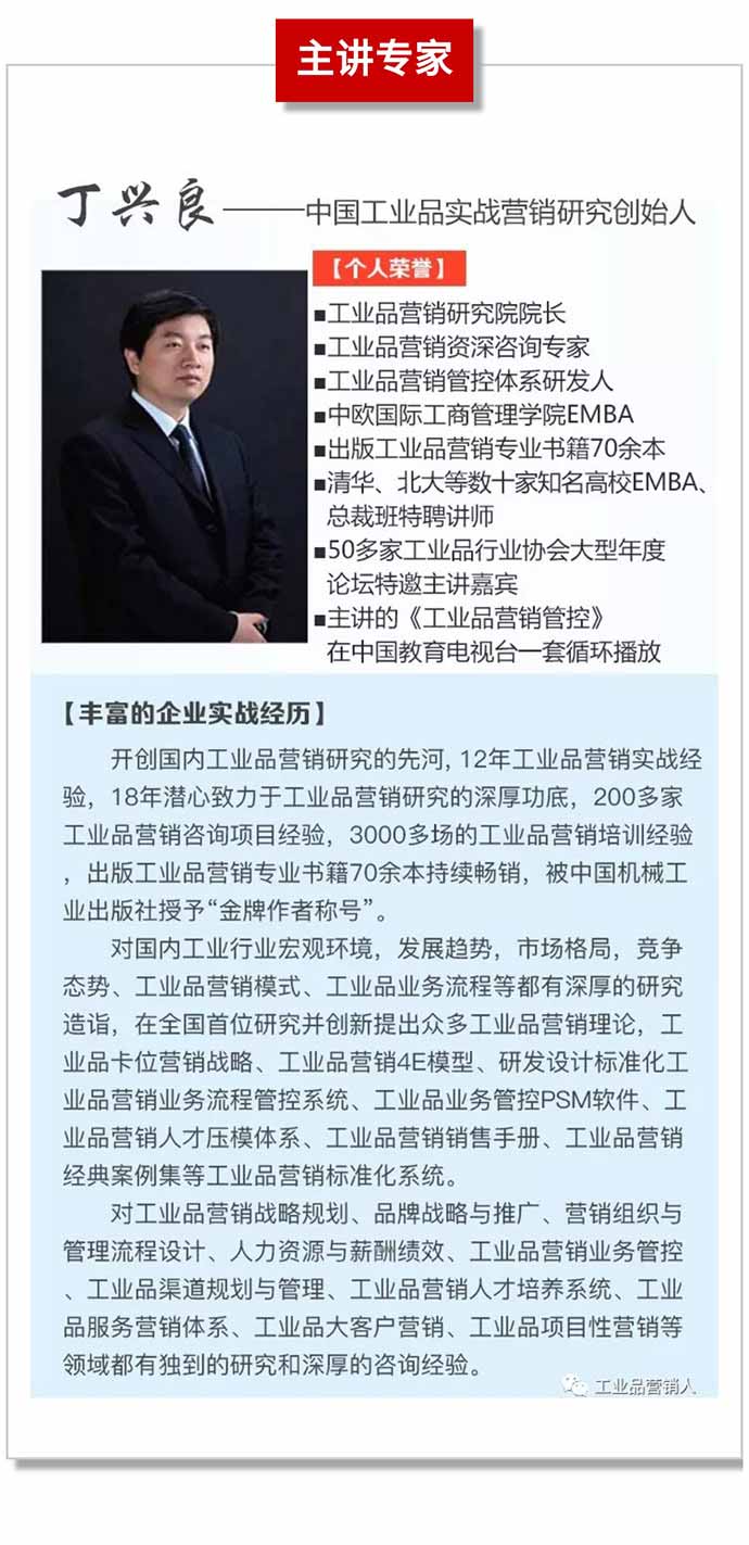 【總裁班預(yù)告】2019年11月29-30日中國(guó)工業(yè)品實(shí)戰(zhàn)咨詢式輔導(dǎo)總裁班第46期即將開課 點(diǎn)擊次數(shù):7022發(fā)布時(shí)間:2019-4-28 21:06:01