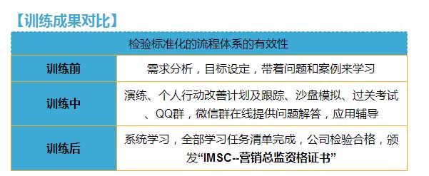 訓(xùn)練有特色:培訓(xùn)以工具流帶動理念提升,并以實(shí)際案例解讀、小組討論、多媒體演示、沙盤推演、情景互動等多種教學(xué)方式,讓學(xué)員打開心門與老師一起思考、一起互動,讓學(xué)員真正掌握大客戶銷售八大核心武器。