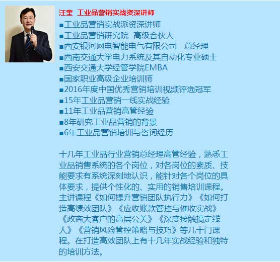 工業(yè)品營銷研究院領(lǐng)銜專家講師團(tuán)順應(yīng)企業(yè)發(fā)展之需,針對當(dāng)前工業(yè)品企業(yè)經(jīng)營過程中和營銷管理中面臨的突出問題,精心設(shè)計(jì)課程,將科學(xué)的營銷管理理論和成功的營銷實(shí)戰(zhàn)經(jīng)驗(yàn)相結(jié)合,為滿足中國工業(yè)品企業(yè)提升營銷總監(jiān)綜合素質(zhì)的迫切需求而竭盡全力。