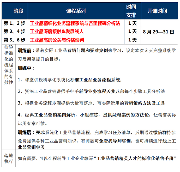 【公開課預告】2019年8月29—31日 工業(yè)品銷售人才壓模系統(tǒng)全面提升公開課即將開課