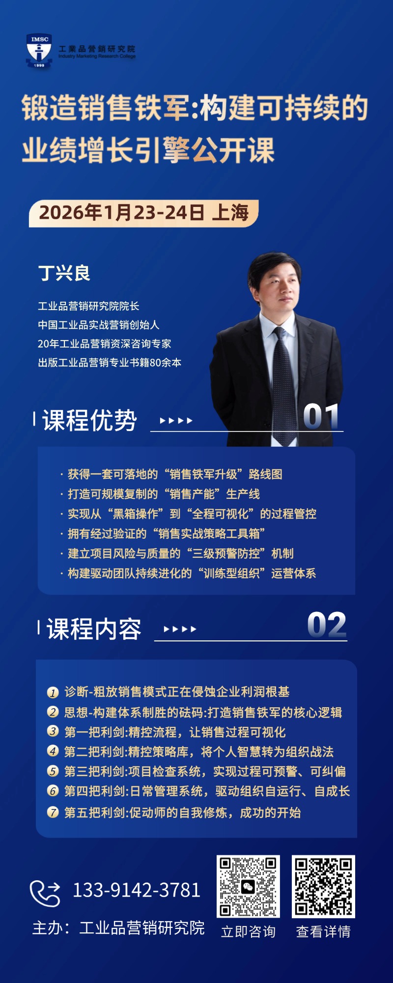 2026年1月23-24日-鍛造銷售鐵軍:構(gòu)建可持續(xù)的業(yè)績增長引擎-公開課 點擊次數(shù):168發(fā)布時間:2025-12-25 14:36:28 上一條:2025年12月26日工業(yè)企業(yè)逆勢增長的底層密碼-線下高層工作坊