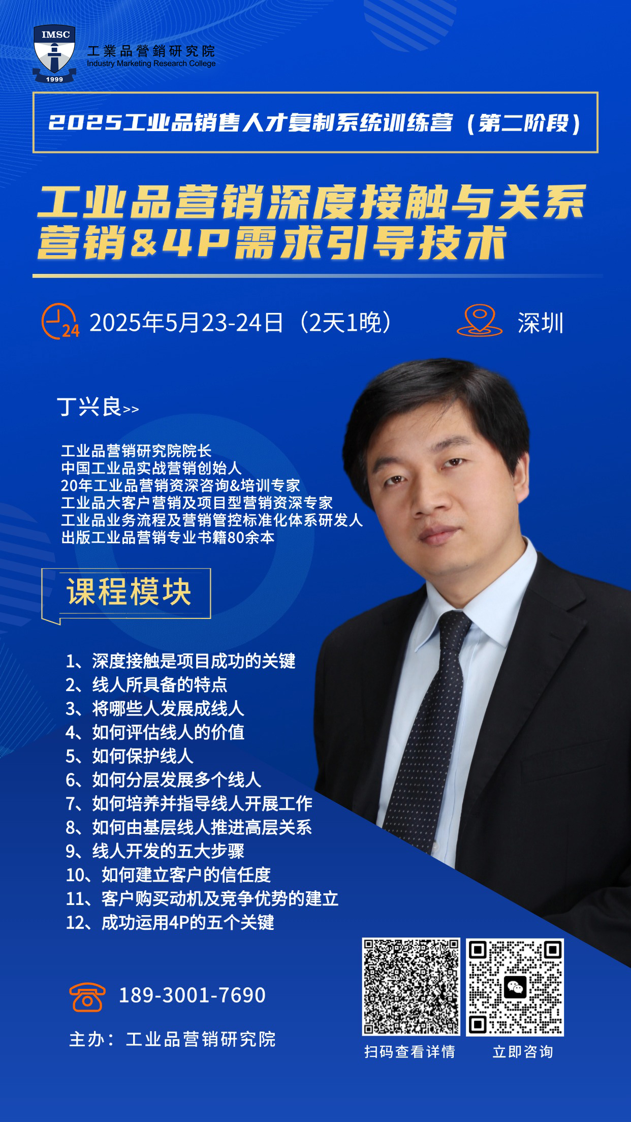 2025年5月23-24日工業(yè)品營(yíng)銷深度接觸與關(guān)系營(yíng)銷&4P需求引導(dǎo)技術(shù)-深圳公開課 點(diǎn)擊次數(shù):3263發(fā)布時(shí)間:2025-5-8 16:05:45 上一條:2025工業(yè)品銷售人才復(fù)制系統(tǒng)訓(xùn)練營(yíng)招生中下一條:研究院與奧力通第二期課程培訓(xùn)《深度接觸與商務(wù)公關(guān)》順利結(jié)束!