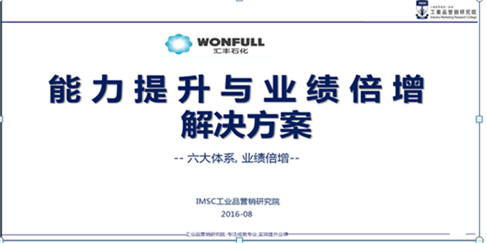 2016年9月,山東匯豐石化集團有限公司特邀工業(yè)品營銷研究院為其企業(yè)營銷團隊進行為期一年的《銷售精英人才壓模系統(tǒng)課程》培訓+全面輔導訓練,以丁老師為主導的講師團隊根據(jù)企業(yè)所存在的問題提出了一系列解決方案更針對其業(yè)務(wù)流程管控“天龍八部”、實操技巧、項目分析等進行系統(tǒng)的培訓。