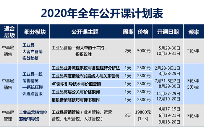 2020年工業(yè)品營銷研究院全年公開課計劃表