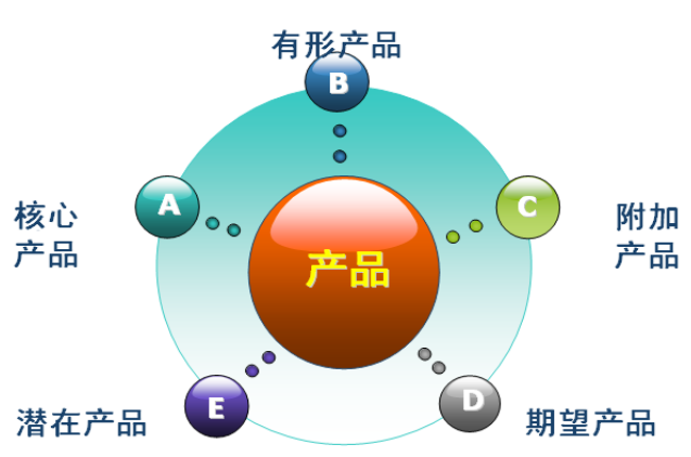 對于任何一個產(chǎn)品由于其被生產(chǎn)出來的目的是為了滿足某種需要,因此每一種產(chǎn)品只有通過交換成為商品那么這個產(chǎn)品才有生產(chǎn)出來的必要和意義,根據(jù)這個要求,人么對以產(chǎn)品的認(rèn)識就會有著更進(jìn)一步和一個全新的理解,并在對產(chǎn)品進(jìn)行詮釋和理解的時候?qū)⑵涓郊右粋€商品的概念在里面。一般現(xiàn)代市場營銷理論認(rèn)為,產(chǎn)品整體概念包含核心產(chǎn)品、有形產(chǎn)品,附加產(chǎn)品,期望產(chǎn)品和潛在產(chǎn)品五個層次。(如圖)