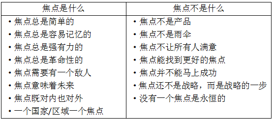 | 聚焦原理,找準(zhǔn)焦點 人們常常以“水滴石穿”來形容有志者事竟成的堅定毅力,但是卻往往忽略了,所謂的“水滴石穿”,是水滴的滴落點在同一處,這是一種專注,更是一種聚焦。假如水滴的滴落點不在同一處,即便是源源不斷、經(jīng)年累月,也無法滴穿大石頭。這就是聚焦的力量。 激光可以用來切割鋼鐵。激光切割的原理是將激光束聚焦成直徑為頭發(fā)絲大小的小點,蒸發(fā)焦點處的材料,形成切縫。就能量強度對比,激光是無法和太陽相比的,之所以太陽光無法切割鋼鐵而激光能夠切割鋼鐵,道理只有一個,那就是太陽光是發(fā)散的,而激光是聚焦的,這就是聚焦與否的區(qū)別。 ![]() 圖7-1 聚焦與否的區(qū)別 好的企業(yè)一定要聚焦,獲得核心優(yōu)勢。事事通不如一事專。企業(yè)可以將有限的資源聚焦于某一個局部,這樣反而能夠產(chǎn)生強大的能量,給企業(yè)帶來意想不到的效果。只有找準(zhǔn)焦點,才能把力量充分的發(fā)揮出來。焦點,也就是突破點。對企業(yè)來說,需要不斷的尋找、更新企業(yè)發(fā)展的突破點。 向深處,不要向?qū)捥幇l(fā)展: ![]() 圖7-2 向深處發(fā)展 釘子、錐子、鉆頭,所有突破阻力的工具都是尖的,而所有用來增加阻力的工具都是寬的,比如降落傘。這是生活中的常識。 運營企業(yè)也是一個道理。 向?qū)捥幇l(fā)展只會增加競爭對手。進入一個領(lǐng)域,就增加了幾個甚至幾十個競爭對手。再進入第二個領(lǐng)域,又增加了幾個幾十個競爭對手。進入的領(lǐng)域越多,競爭對手就越多。到最后,被競爭對手團團包圍,根本數(shù)不清有多少的競爭對手。而向深處發(fā)展得到的是領(lǐng)先,得到的是合作,是合作伙伴。做的越好,就越和別人互補,別人就越愿意和你合作。合作而不是競爭,得道多助,失道寡助,這個“道”就是聚焦。 向深處發(fā)展還能引起“連鎖反應(yīng)”和“杠桿效應(yīng)”。當(dāng)在一個領(lǐng)域發(fā)展到深處,擁有一種特殊的核心能力之后,可以以這種核心能力為杠桿,撬動更大的市場。 騰訊多年耕耘即時通訊領(lǐng)域,QQ是中國用戶最多的即時通訊工具,憑借QQ的巨大用戶量,騰訊迅速的在游戲、門戶、社區(qū)、移動增值等領(lǐng)域發(fā)展壯大,這就是聚焦的“杠桿效應(yīng)”。 你無法讓星星聚焦,卻可以讓企業(yè)聚焦——王老吉的轉(zhuǎn)型 2003年之前,加多寶集團的王老吉只是一個年銷售穩(wěn)定在億元上下的區(qū)域品牌,在廣東、浙南地區(qū)銷售不錯。王老吉定位是涼茶還是飲料,生產(chǎn)企業(yè)不清楚,消費者也不清楚。 王老吉當(dāng)年的廣告“健康家庭,永遠相伴”——也說不清王老吉的特點。調(diào)查發(fā)現(xiàn),喝王老吉的消費者紛紛推出一點,就是喝王老吉不上火。 于是,王老吉改變定位,新的定位是為不上火的飲料。幾千年中醫(yī)的“上火”的概念在全國各地深入人心,新的定位使王老吉突破了涼茶概念,只要做好宣傳概念的轉(zhuǎn)移,只要有中國人的地方,就可以有王老吉。 確定新定位之后就是聚焦定位。 王老吉選擇了一個特殊的渠道——餐飲,選擇湘菜和川菜館、火鍋店作為“王老吉誠意合作店”,投入資金與他們共同進行促銷活動,凡是就餐的地方都要擺上“王老吉”。 王老吉為餐飲渠道設(shè)計布置了大量的終端物料,如設(shè)計制作了電子顯示屏、燈籠 等餐飲場所樂于接受的實用物品,免費贈送。事實證明,餐飲這條渠道非常有效,“怕上火,喝王老吉”迅速被餐飲消費人群所接受。隨后,“王老吉”實現(xiàn)了從單一渠道到渠道混合的逐步滲透,并迅速鋪向了整個市場。 在鋪天蓋地的廣告中,王老吉一遍又一遍的重復(fù)著“怕上火,喝王老吉”。準(zhǔn)確的表達,足量的投放,迅速在全國上下卷起一股喝王老吉的風(fēng)潮。2003年,王老吉的銷售額從2002年的1億多元猛增至6億元,2004年全年銷量突破10億元, 2008年全年銷量突破100億元。 15把長期聚焦的鑰匙 表7-1 15把長期聚焦的鑰匙 ![]() 焦點總是簡單的。簡單、容易理解,企業(yè)上下才能夠認同。復(fù)雜,就不能聚焦。復(fù)雜的事情,要么難以理解,要么各人理解的都不同,東西南北中,哪個方向都有,力使不到一起來; 焦點總是容易記憶的。容易記憶,才能夠打入顧客的頭腦中去,對從外對內(nèi),對公司形成一個拉力,拉動公司的市場份額; 焦點總是強有力的。焦點是錐子而不是棉花糖。錐子,力用在一處,集中力量,破除阻礙,得到突破。用再大的力,也不能把棉花糖擠進木頭中去; 焦點總是革命性的。革命性的力量是最強有力的力量,這種力量能夠把市場撕開一個口子,或者從無到有創(chuàng)造出一塊市場出來。 焦點需要有一個敵人。要成功,你需要朋友;要非常成功,你需要敵人;要真正成功,你需要戰(zhàn)勝自己。當(dāng)有競爭對手時,這個敵人就是競爭對手,當(dāng)沒有競爭對手時,這個敵人,就是自己。敵人是一種有形的目標(biāo),通過這個目標(biāo),鞭策自己,不斷的迫使自己進步,迫使超越。 焦點意味著未來。焦點是一支箭,箭尾是現(xiàn)在,箭首是未來。立足當(dāng)下,面向未來,突破樊籬,獲得發(fā)展。 焦點即對內(nèi)也對外。對內(nèi),它增強企業(yè)的核心優(yōu)勢,建立與鞏固企業(yè)的核心競爭力。對外,它增強顧客的認知。 焦點不是產(chǎn)品。焦點是使企業(yè)的